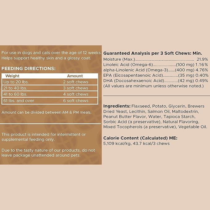 About This This dog supplement contains omega fatty acids derived from salmon oil, fish oil, flaxseed, and more to promote... Read more