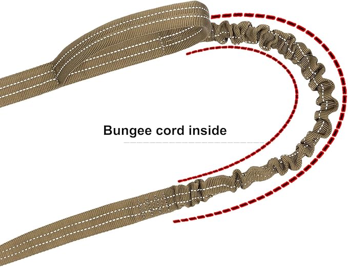 ICEFANG Tactical Dog Leash,K9 Training Walking Bungee Lead with 2 Control Handle,Heavy Duty Quick Release Metal Clasp,Hands Free D-Ring for Medium Large Dogs (6ft,Reflective Brown)