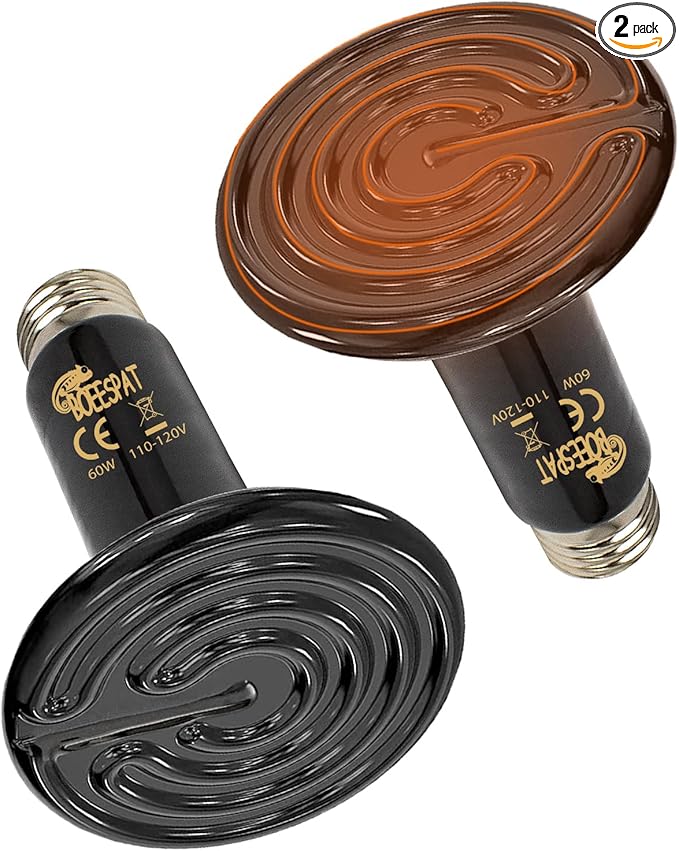Energy Efficient 60W Reptile Basking Heat Lamp Bulbs, Pack of 2 Ceramic Heat Emitters for Tortoise, Bearded Dragon, Lizard, Iguana, Reptile (Black, 60 Watts)