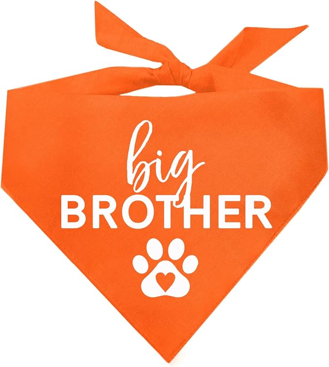 Big Brother Heart Paw Dog Bandana | 100% Cotton Adjustable Triangle | Pregnancy Announcement Photoshoot Prop | New Baby | Made in USA | Matching Family | Orange X-Small (87)