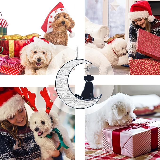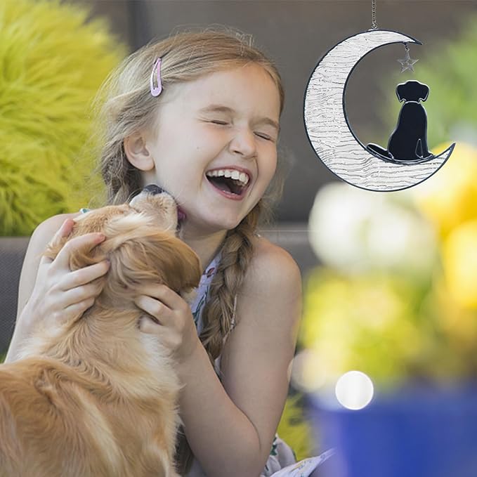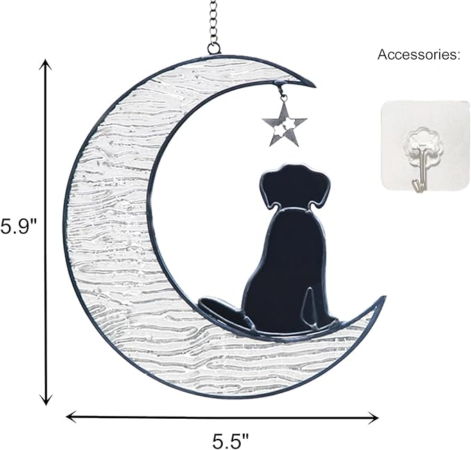 - Dog Bereavement Gifts - Each dog-on-moon stained glass piece comes with durable metal chains for easy hanging. This adorable stained glass window hanging adds a touch of charm to your space, making life more vibrant and meaningful.