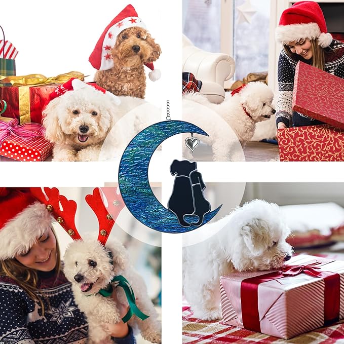 - Dog Bereavement Gifts - Each dog-on-moon stained glass piece comes with durable metal chains for easy hanging. This adorable stained glass window hanging adds a touch of charm to your space, making life more vibrant and meaningful.