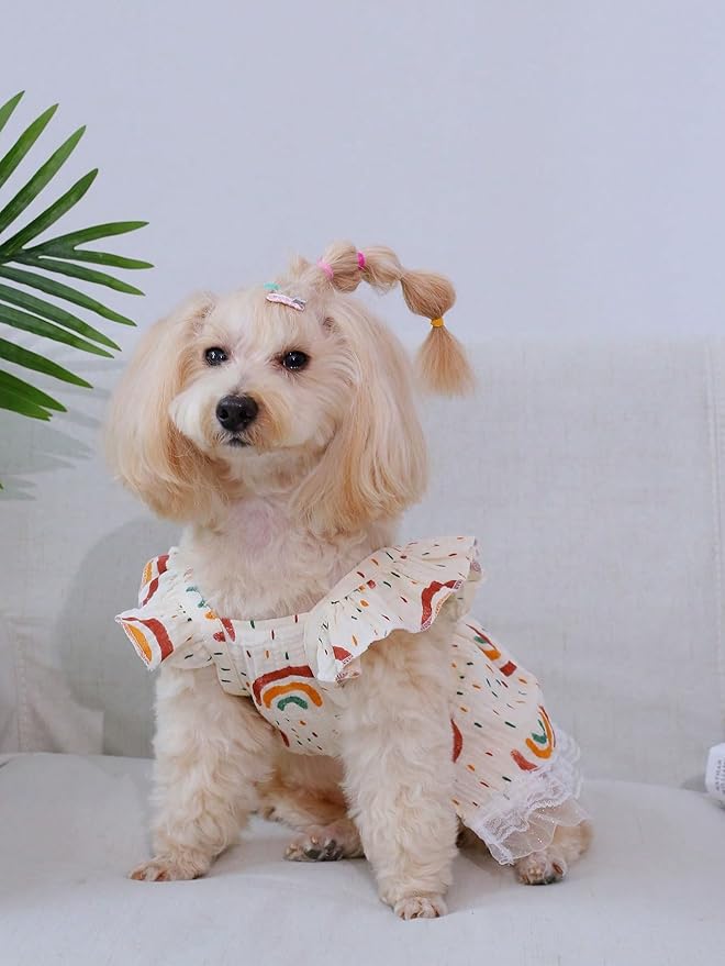 QWINEE 2pc Cute Dog Dress Ruffle Trim Princess Dress Cat Vest Dress Lace Trim Summer Dress Pet Clothes for Small Medium Cats Dogs Kitten Puppy Multi L