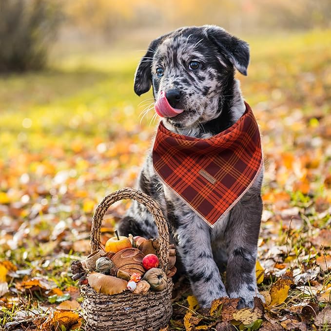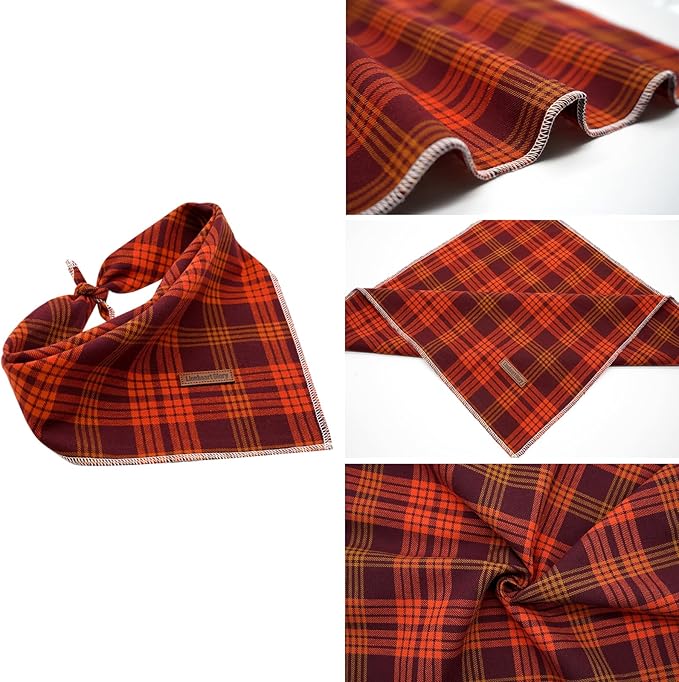Lionheart glory Dog Bandana 1 Pack Washable Soft Plaid Dog Scarf, Fall Bib Scarf Boy Girl Bandana Square Adjustable Dog Bandanas for Small to Large Dog