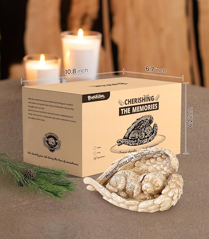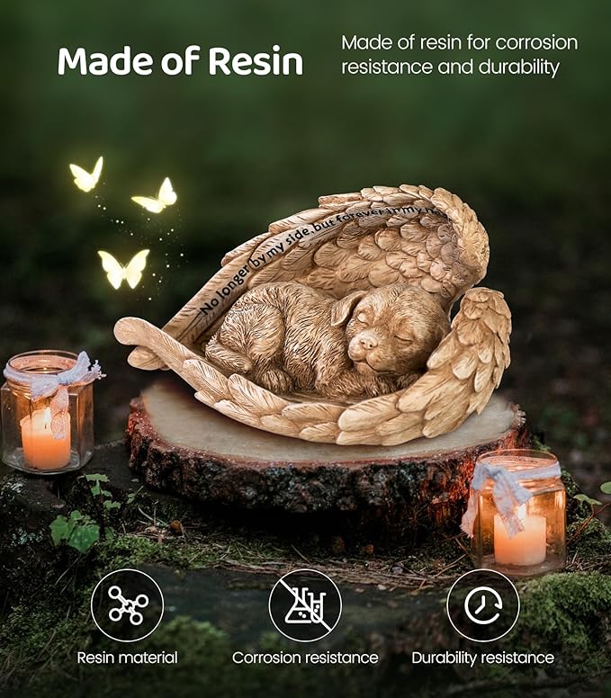 - Thoughtful Pet Memorial Gift: Whether for oneself or as a compassionate gesture to a mourning pet owner, our angel pet memorial stone serves as a source of solace and comfort during the difficult time of losing a beloved dog. It's a heartfelt tribute that beautifully commemorates the special bond shared with a furry companion, offering a tangible symbol of remembrance and support.