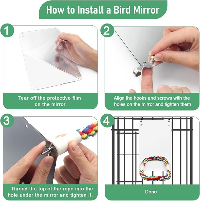 About This High-Quality Material: Our bird mirrors are made of acrylic mirrors, cotton rope, and Galvanized iron accessories, non-toxic, resistant... Read more