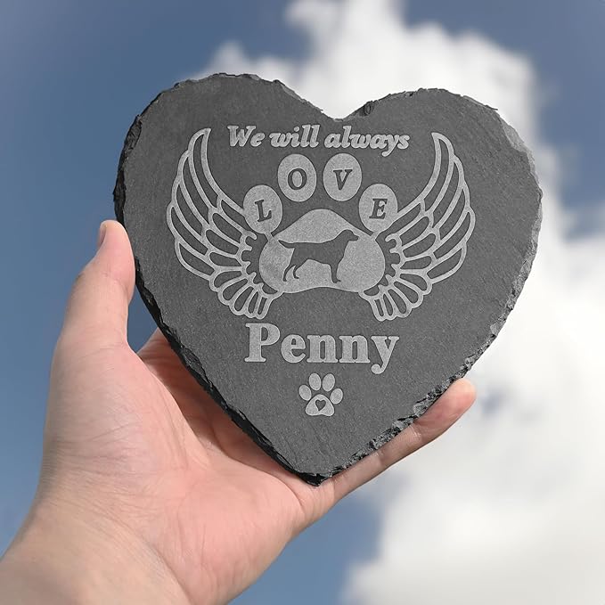 - 🐈Pet Memorial Keepsake: This personalized pet memorial stone expresses eternal love for pets from the perspective of commemorating them. The heart-shaped frame, pet footprints, name and date make this small stone help remind you of good times and preserve the memories of your pet's love.