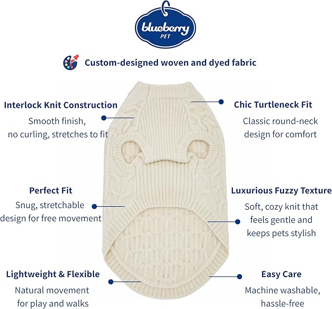 Blueberry Pet Classic Fuzzy Textured Knit Pullover Crew-Neck Dog Sweater in Ivory, Back Length 22", Pack of 1 Clothes for Dogs