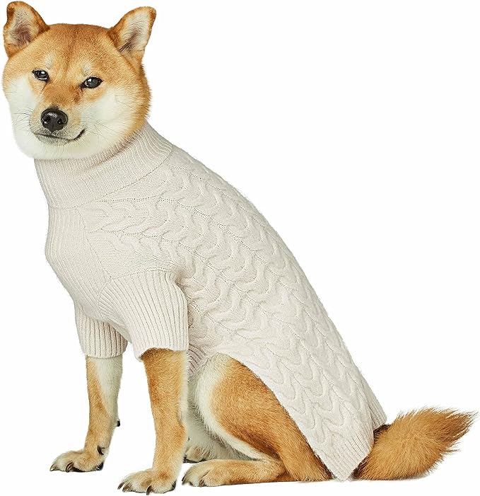 Blueberry Pet Classic Fuzzy Textured Knit Pullover Turtle-Neck Dog Sweater in Ivory, Back Length 16", Pack of 1 Clothes for Dogs