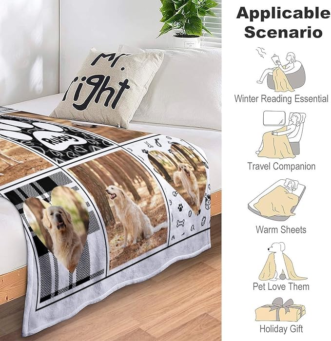 - đăDog Sympathy GiftăKids (40"X50"), adults (50"X60") , (60"X80"). You can choose the right size according to different needs and different users. Personalized pet photo blanket can be utilized as sleeping blankets, summer quilt Air-conditioning blanket, leisure blankets, sofa blanket, travel blankets, camping blankets, nap blankets, bed sheets, tapestry, baby carriage blankets, car back seat blankets, picnicing blankets.