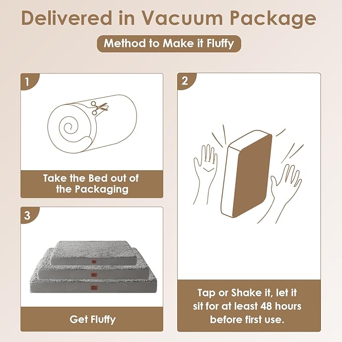 EHEYCIGA Orthopedic XL Dog Beds for Extra Large Dogs with Removable Washable Cover, Light Grey, 44x32