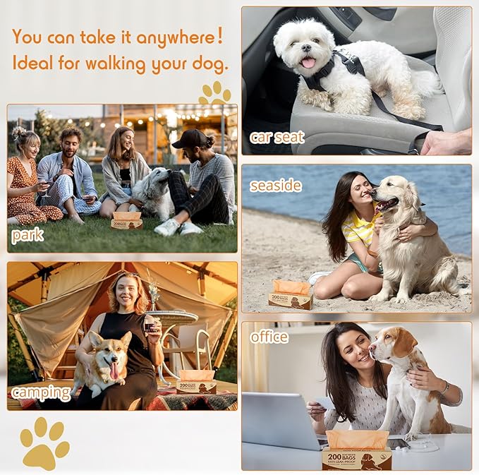 - Wide Application: our doggy poop bag can pick up and safely store pet messy feces and deposits easily, which are ideal for owners who love taking their dog or puppy to the park, on long walks, or trips around town, suitable for many occasions, such as apartment building, park, doggie daycare, airport, beach, apartment complex etc, you can enjoy a stress free walk with your best buddy