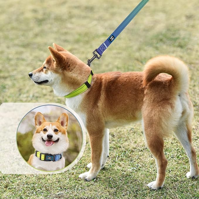 Roses&Poetry Reflective Dog Collar and Lead with Gradient Amber, Adjustable Durable Puppy Collars Leash for Extra Small Dogs (Amber-L)