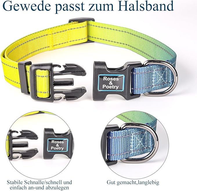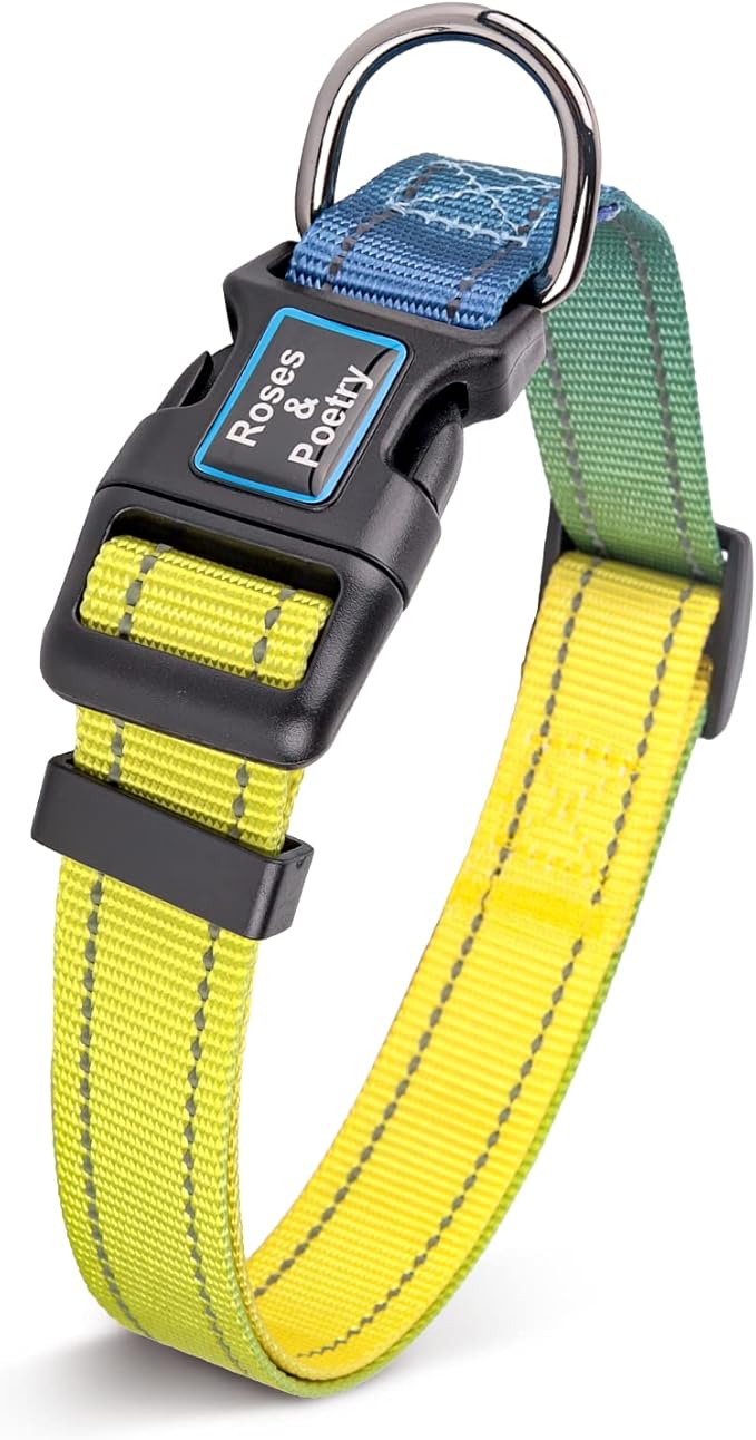Roses&Poetry XS Dog Collar with Gradient Amber, Yellow Reflective Dog Collar Adjustable XSmall Puppy Collars Tiny for Small Medium Large Dogs (Amber-XS)