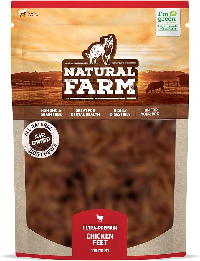 Natural Farm Nail-Free Chicken Feet Dog Treats (100 Pack), 100% Free-Range Air Dried Chicken Feet, No Nails, Fully Digestible, High Protein, Low Calorie, Joint Support, Single Ingredient