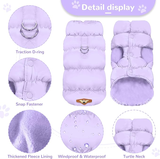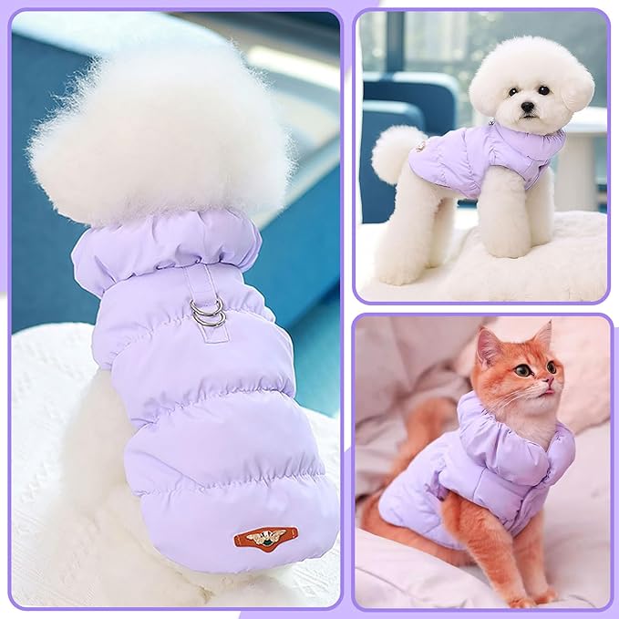 Winter Warm Dog Jacket for Small Medium Dogs Cat Cold Weather Coats with Harness Paded Dogs Fleece Vest Waterproof Windproof Dog Snow Jacket Pet Puppy Clothes (Purple,M)