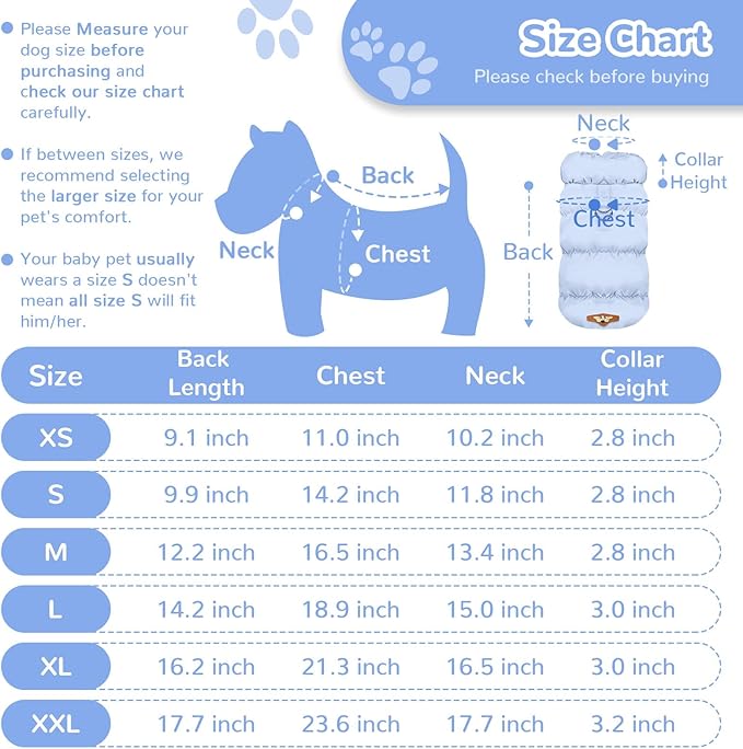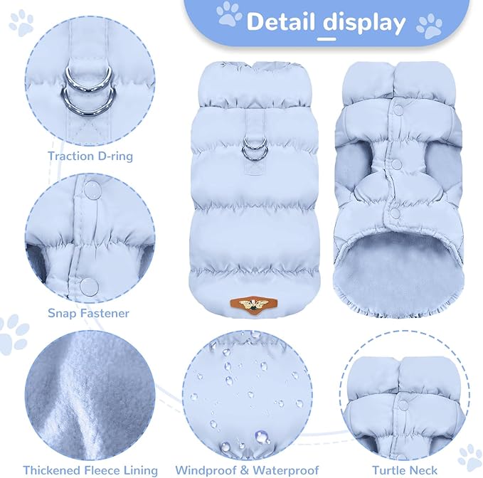 Winter Warm Dog Jacket for Small Medium Dogs Cat Cold Weather Coats with Harness Paded Dogs Fleece Vest Waterproof Windproof Dog Snow Jacket Pet Puppy Clothes (Light Blue,XXL)