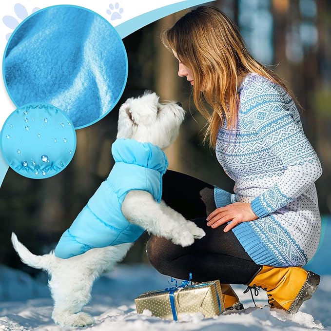 Winter Warm Dog Jacket for Small Medium Dogs Cat Cold Weather Coats with Harness Paded Dogs Fleece Vest Waterproof Windproof Dog Snow Jacket Pet Puppy Clothes (Blue,M)