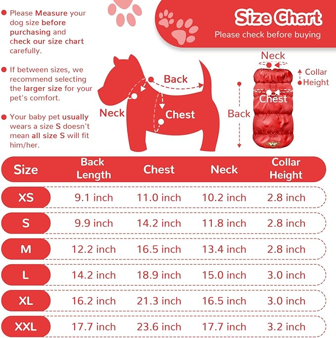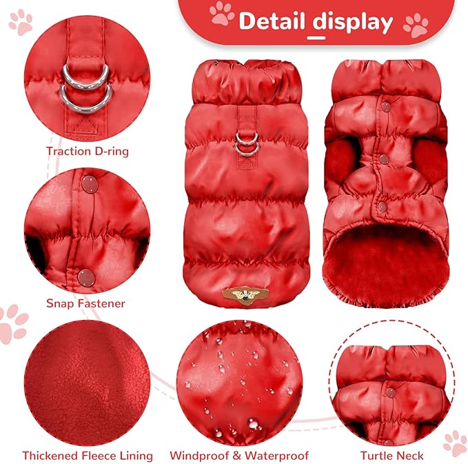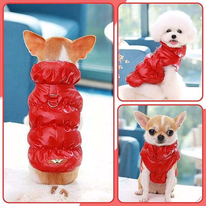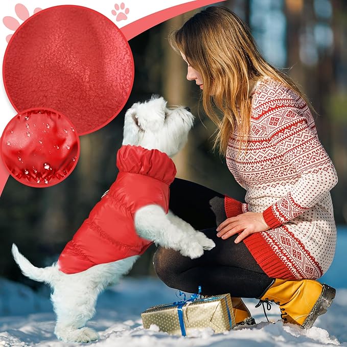 Winter Warm Dog Jacket for Small Medium Dogs Cat Cold Weather Coats with Harness Paded Dog Fleece Vest Waterproof Windproof Dogs Snow Jacket Pet Puppy Clothes (Red,S)