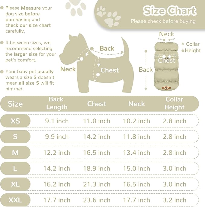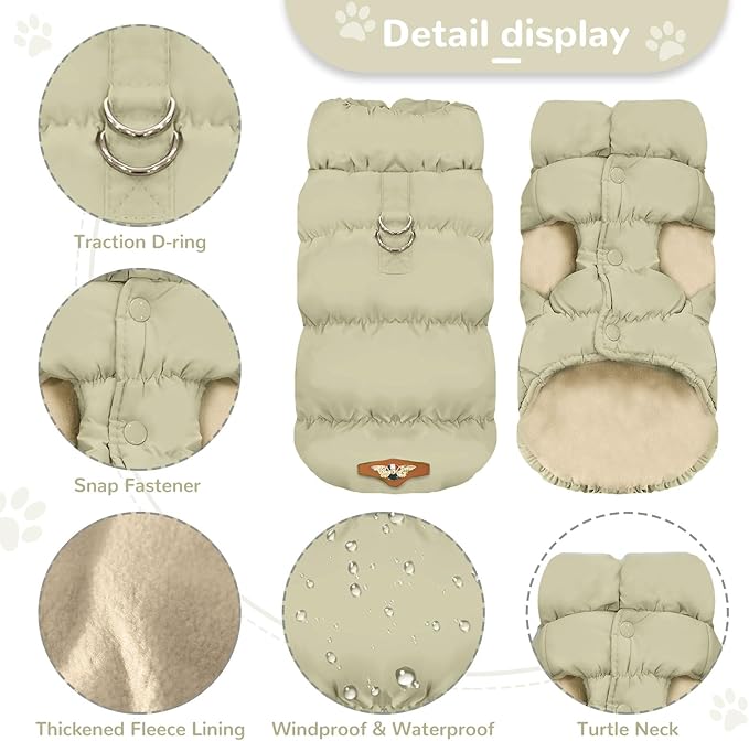 Winter Warm Dog Jacket for Small Medium Dogs Cat Cold Weather Coats with Harness Paded Dogs Fleece Vest Waterproof Windproof Dog Snow Jacket Pet Puppy Clothes (Khaki,XS)