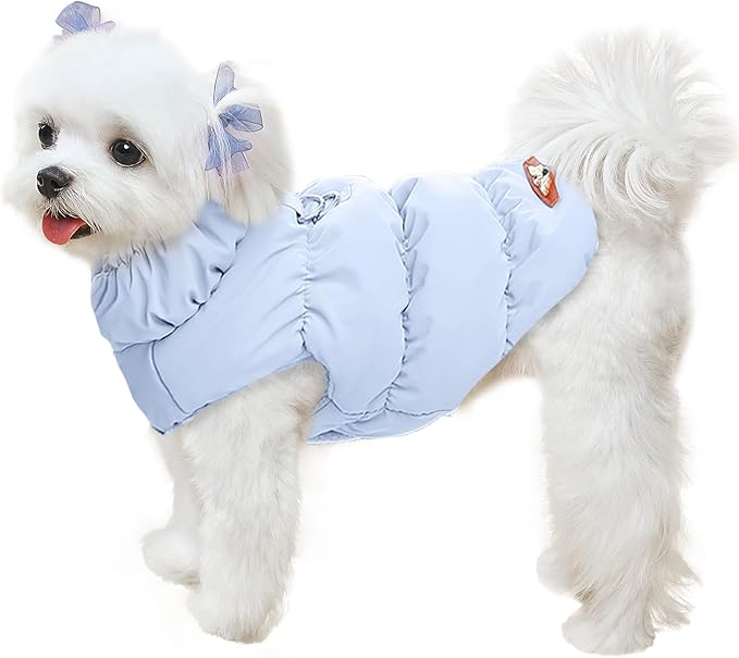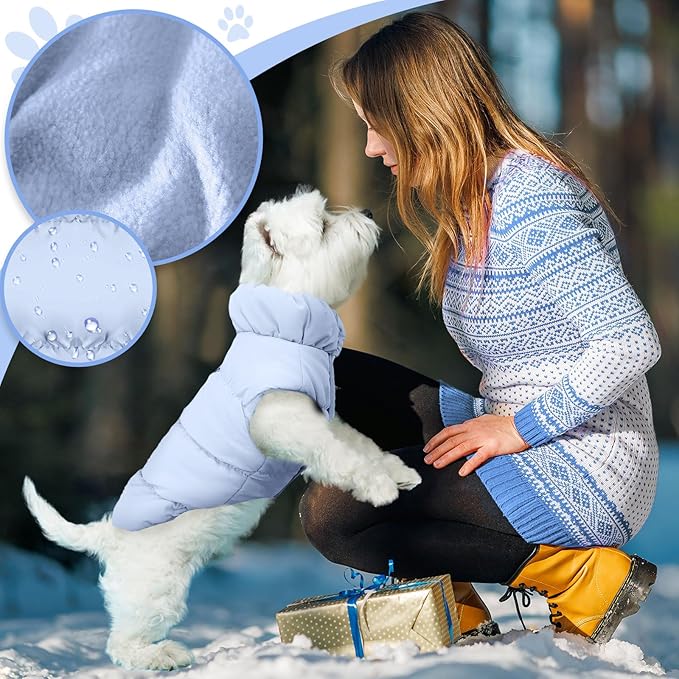 Winter Warm Dog Jacket for Small Medium Dogs Cat Cold Weather Coats with Harness Paded Dogs Fleece Vest Waterproof Windproof Dog Snow Jacket Pet Puppy Clothes (Light Blue,L)
