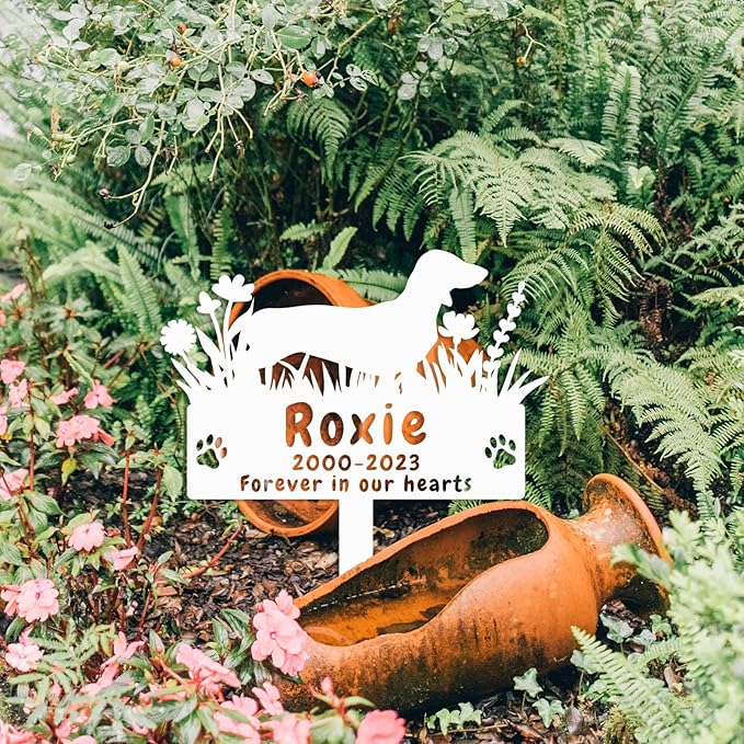 Personalized Dog Dachshund Memorial Stake Engraved Grave Stake, Custom Flowers Dog Memorial Grave Marker Outdoor Memorial Plaque, Dog Memorial Engraved Sign Pet Memorial Garden Stake