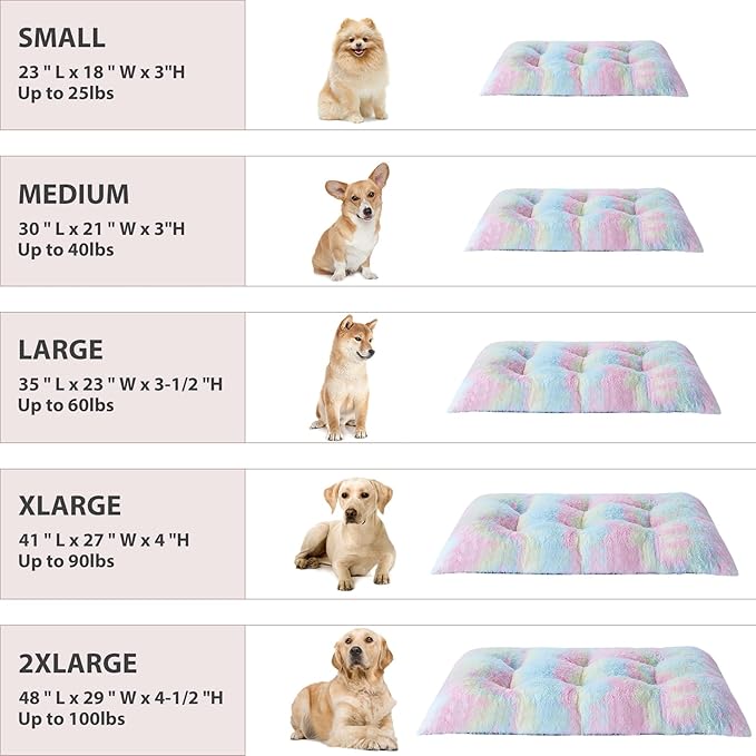 BFPETHOME Dog Beds for Large Dogs, Plush Dog Crate Bed Fluffy Cozy Kennel Pad for Sleeping &Ease Anxiety, Washable Pet Mats with Anti-Slip Bottom for Large Medium Dogs, Pet Bed, Rainbow