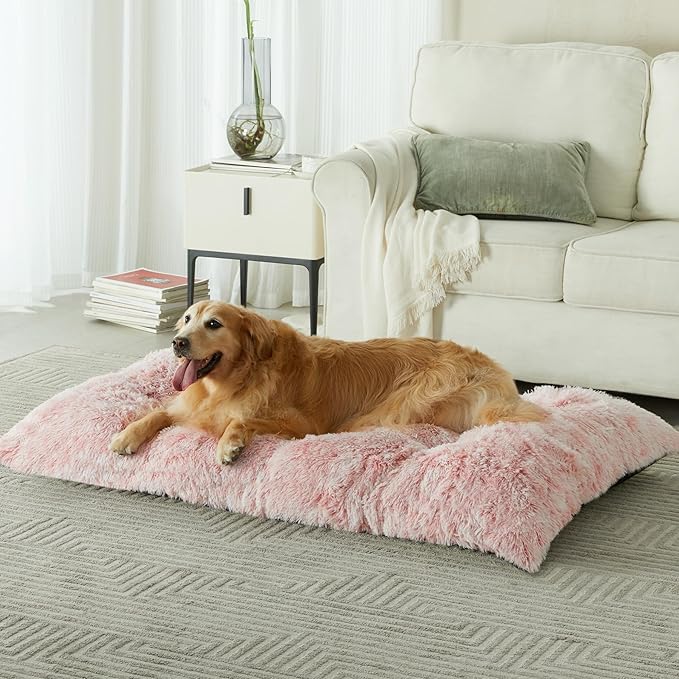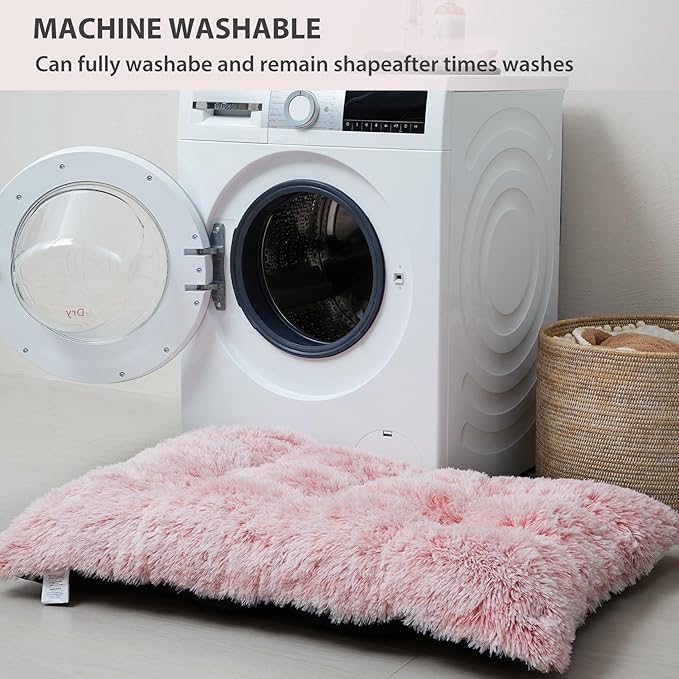 BFPETHOME Dog Beds for Large Dogs, Plush Dog Crate Bed Fluffy Cozy Kennel Pad for Sleeping &Ease Anxiety, Washable Pet Mats with Anti-Slip Bottom for Large Dogs, Pink