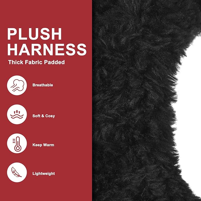 EXPAWLORER Fleece Lined Step-in Dog Harness - Soft Plush Padded Puppy Harness and Leash Set with Adjustable Dog Collar, No Pull Escape Proof Suede Dog Vest Harness for Small Dogs, Red & Black S