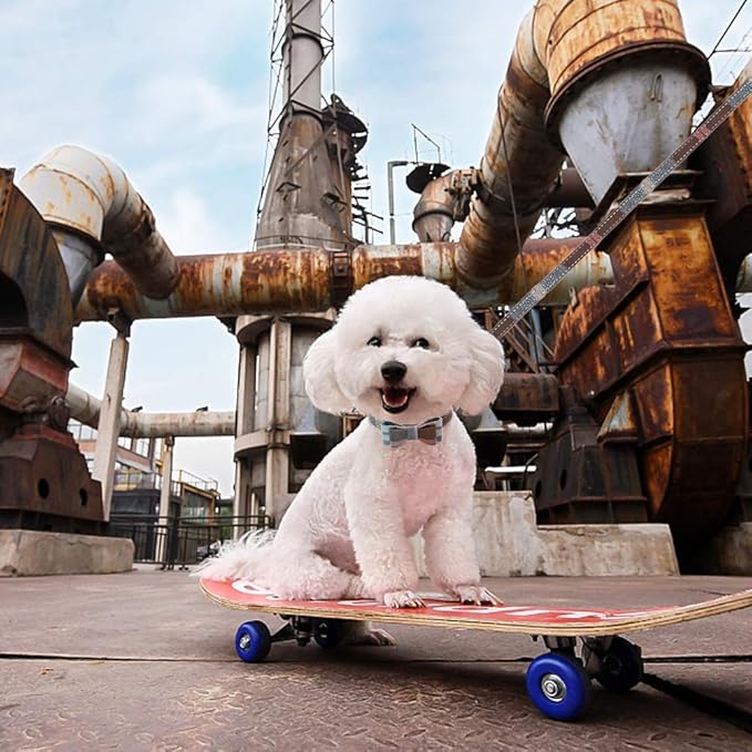 EXPAWLORER Dog Collar and Leash Set - Classic Plaid Bow Tie & Dog Bandana Collar with Bell, Dog Leash Tangle Free, Adjustable Collars for Puppy Small Dogs and Cats, Holiday Ideal Gift, Blue XS