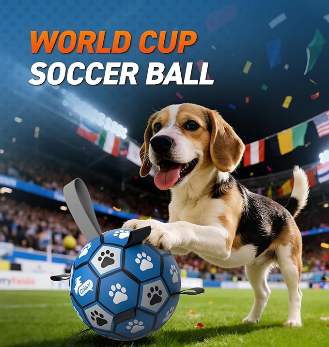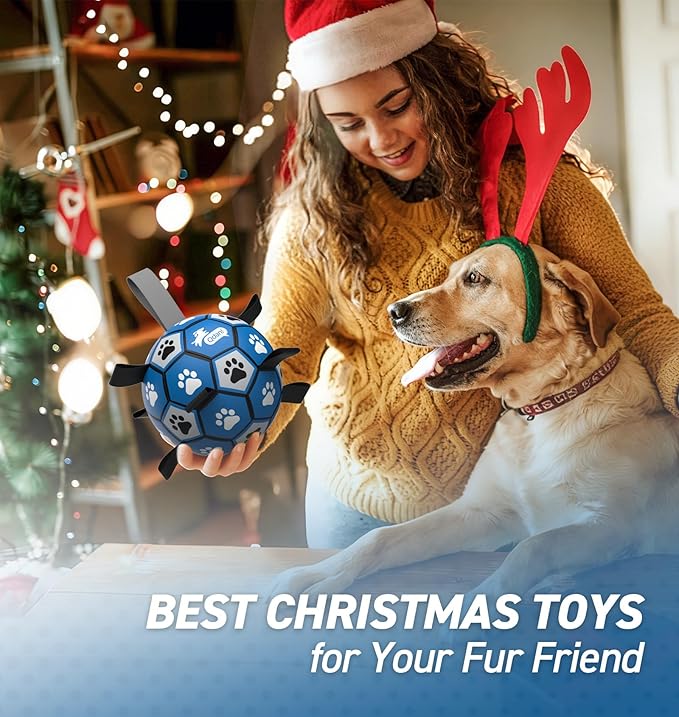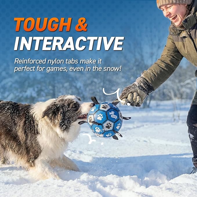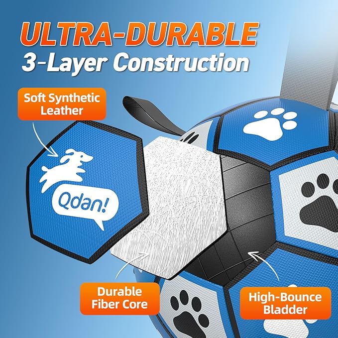 QDAN Dog Balls Toys, Soccer Ball with Straps, Balls for Dogs for Small Medium Puppy, Herding Ball Toy, Birthday Gifts (6 Inch)