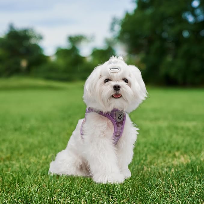EXPAWLORER Classic Plaid Step-in Dog Harness with Adjustable Collar, Soft No-Pull Vest, Reflective, Purple