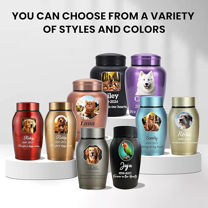 - Customizable: Add the name, birthdate, date of passing, and a heartfelt message for your beloved pet . Create a personalized tribute for your furry friend. A customized pet ashes keepsake never goes out of style. Taking our pet urns for dogs ashes right now.
