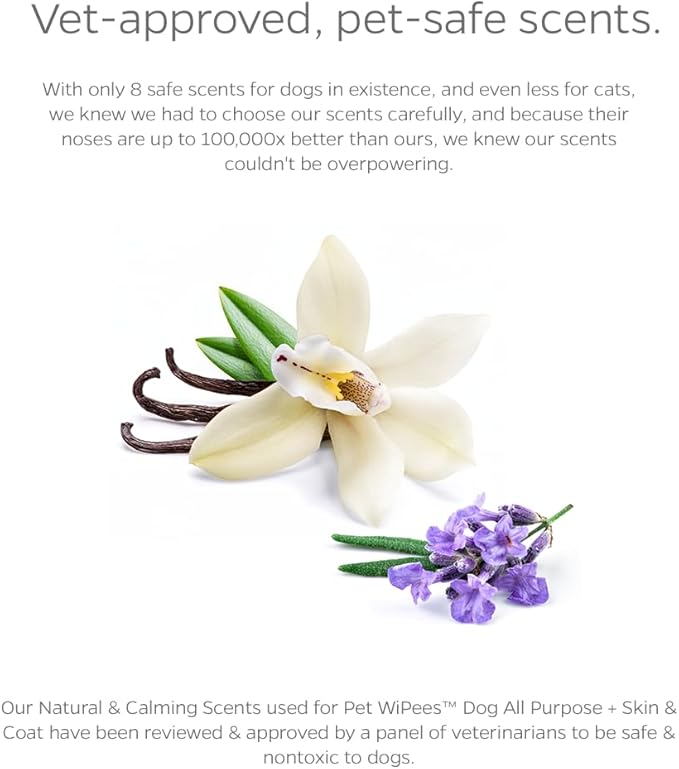 Dog All Purpose + Skin & Coat Pet WiPees™ – 100 All Natural Cleaning & Moisturizing Dog Wipes for Paws, Folds & Fur, Dog Lotion Alternative, Daily Pet Wipes for Skin & Coat Health (Calming, 100ct)