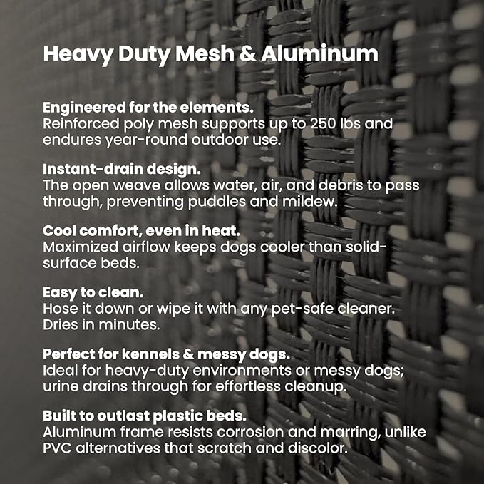 K9 Ballistics Chew Proof Elevated Outdoor Cooling Cot Bed for Medium Dogs - Virtually Indestructible, Preassembled, Withstands Aggressive Chewers - M, Black Mesh