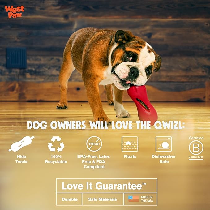WEST PAW Zogoflex Qwizl Dog Puzzle Treat Toy – Interactive Chew Toy for Dogs – Dispenses Pet Treats – Brightly-Colored Dog Enrichment Toy for Aggressive Chewers, Fetch, Catch, Large 6.5", Ruby