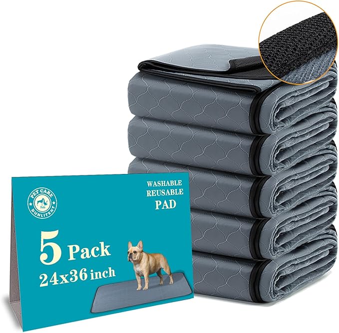 Washable Pee Pads 5 Pack, 24" x 36", Reusable Pee Pads for Dogs, Puppy Pads Washable with Quick Dry, Anti-Slip Dog Pee Pads, Whelping Pads, Dog Carpet