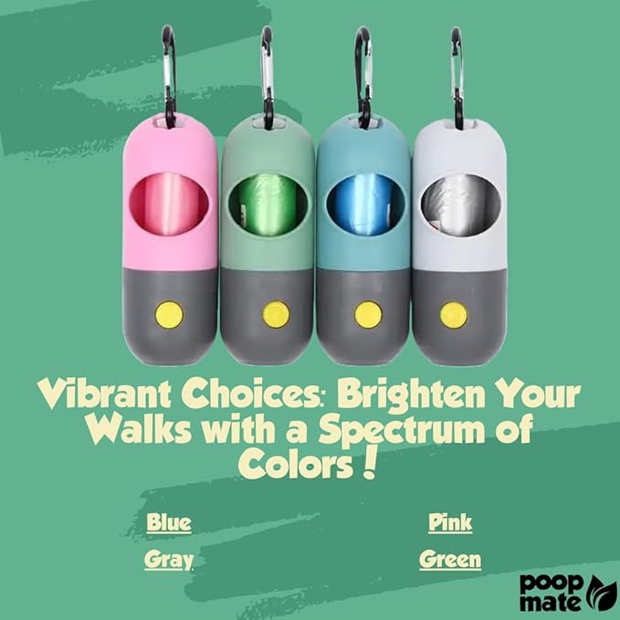 - Don't let the mess or darkness dampen your pet walks anymore. Upgrade your pet accessory game with the Ultimate Pet Poop Bag Holder with LED Flashlight. Keep your hands free, your path well-lit, and your commitment to a clean environment intact. Click "Add to Cart" now and experience hassle-free pet walks like never before!