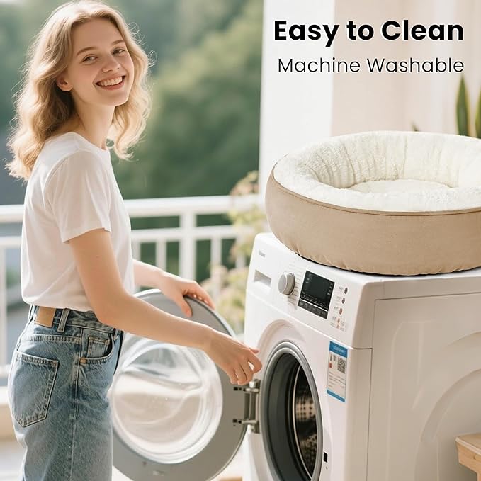 Love's cabin Round Donut Cat and Dog Cushion Bed, 20in Pet Bed for Cats or Small Dogs, Anti-Slip & Water-Resistant Bottom, Super Soft Durable Fabric Pet beds, Washable Luxury Cat & Dog Bed Camel