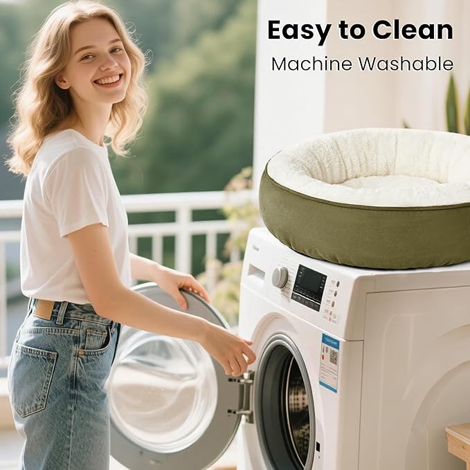 Love's cabin Round Donut Cat and Dog Cushion Bed, 20in Pet Bed For Cats or Small Dogs, Anti-Slip & Water-Resistant Bottom, Super Soft Durable Fabric Pet beds, Washable Luxury Cat & Dog Bed Olive Green