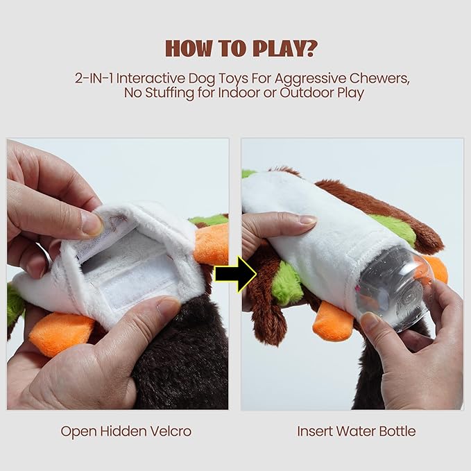 Nocciola 2-in-1 No Stuffing Crinkle Dog Toys with Soft and Durable Fabric, Holds Water Bottles, 2 Extra Long & 3 Regular Size Stuffless Squeaky Dog Toys for Small to Large Dog