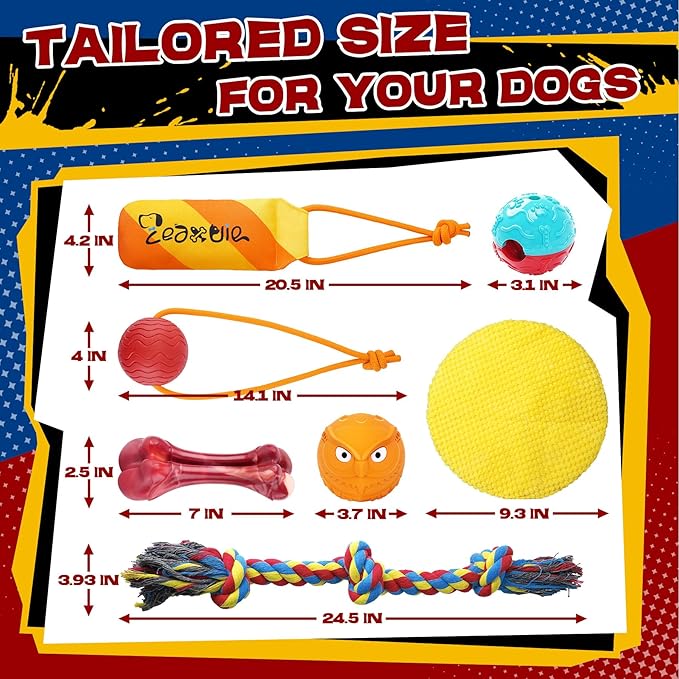 Zeaxuie 12 Pack Heavy Duty Various Dog Chew Toys Pack for Aggressive Chewers - Includes Large Rope Toys, Squeaky Toys & Indestructible Chew Bone for Medium, Large & X-Large Dogs (for Powerful Chewers)