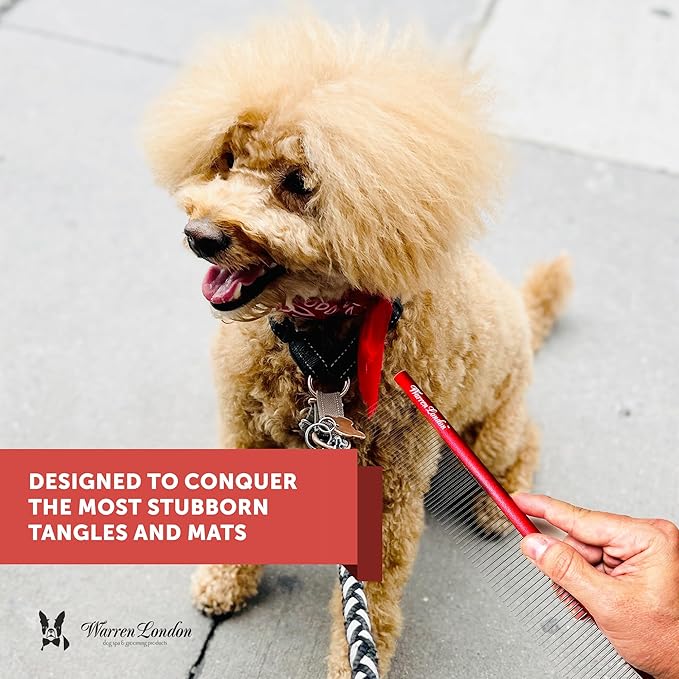 Warren London Detangling Strong Comb for Dogs | 10 inches | Comfort Control Durability and Detail for Small Medium Large Dogs | Ergonomic Dog Cat Grooming Pet Supplies Deshedding Mat Tool