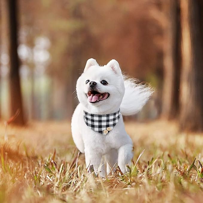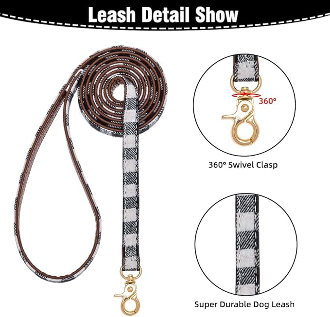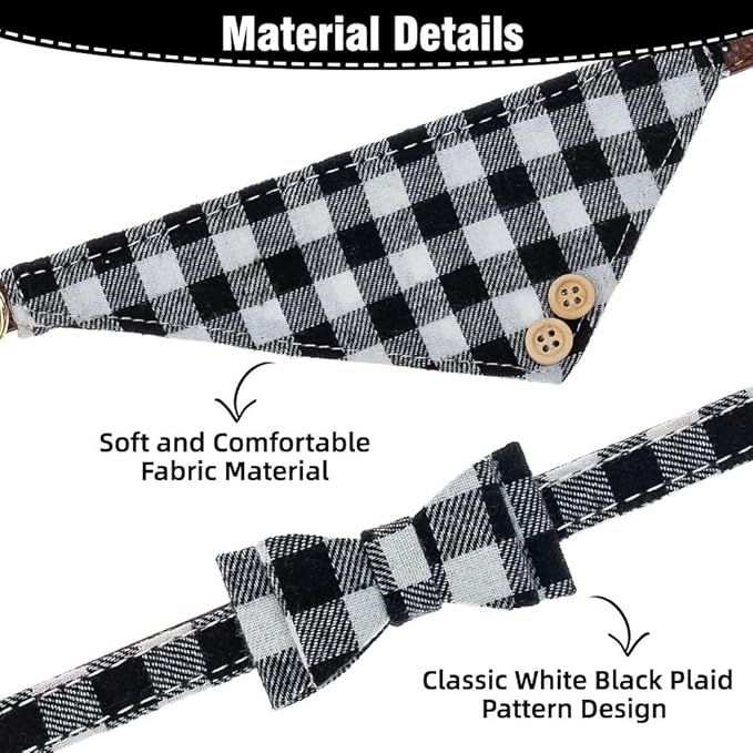 EXPAWLORER Dog Collar and Leash Set - Classic Plaid Dog Bow Tie and Dog Bandana Collar, Dog Leash Tangle Free, Adjustable Collars for Medium Dogs, Holiday Ideal Gift, M