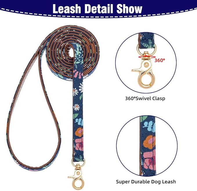 EXPAWLORER Dog Collar and Leash Set - Classic Plaid Dog Bow Tie and Dog Bandana Collar, Dog Leash Tangle Free, Adjustable Collars for Medium Dogs, Holiday Ideal Gift, Flower M