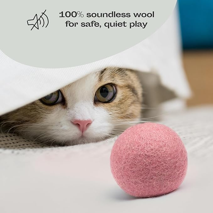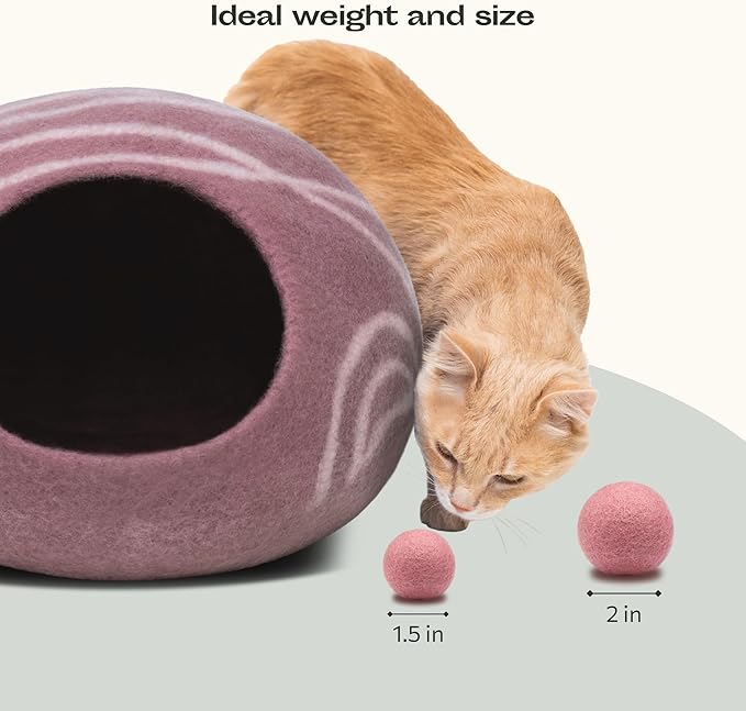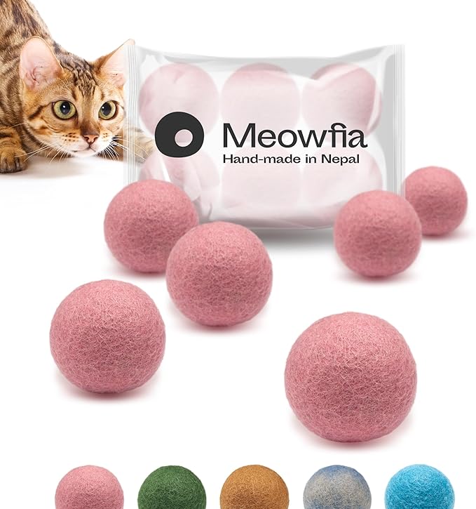 MEOWFIA Wool Ball Toys - 6-Pack of Safe for Cats and Small Dogs Balls - 2 Inch Felted Wool Cat Toy and Dog Toy - Perfect with Cat Cave - Silent - Mini Tennis Balls - (2in/Pink)