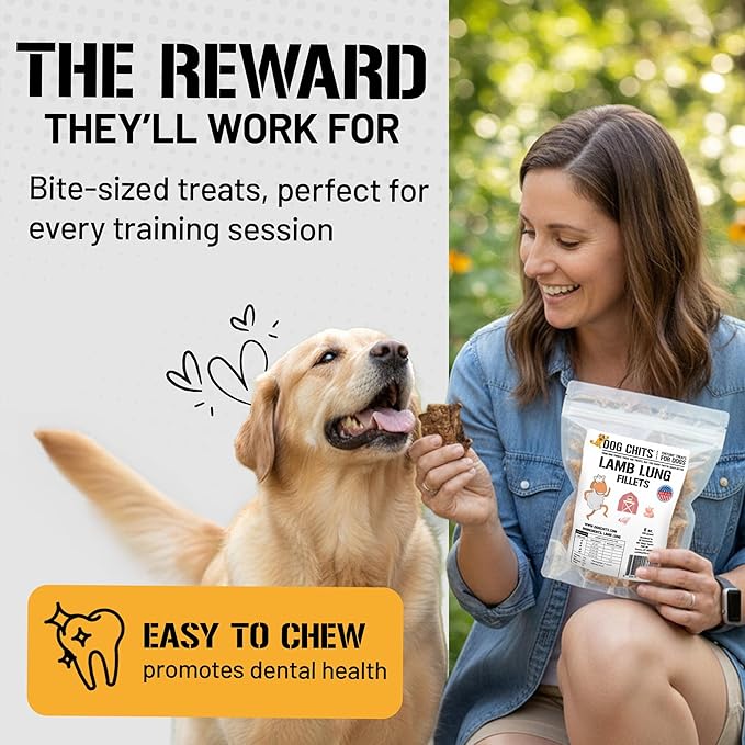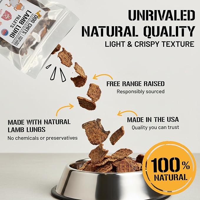 Dog Chits Lamb Lung Fillets Dog and Puppy Treats - Low Fat, High Protein Single Ingredient Dog Treat - Easy to Break Slices - Great for Training - Made in USA, 6 oz. Bag