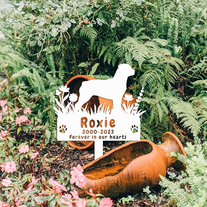 - Customized Sizes Colors: The pet memorial grave stake markre is available in 8in, 10in, 12in, 14in, 16in, 18in, 20in, 22in and 24in. You can choose a color for your pet's metal stake, we have black, red, green, gold, copper, blue and white colors.