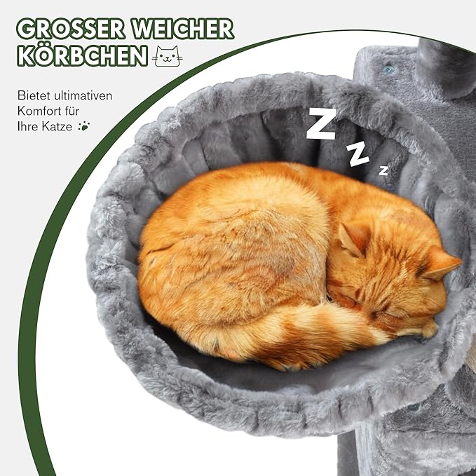 - Premium Material: The multilevel cat tree is crafted out of a CARB-certified P2-grade particle board and plush, the reinforcement posts are covered with natural sisal rope, so that cats can comfortably sharpen their claws instead of scratching the sofa