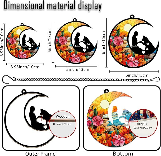 - ⛓️ Easy To Install ⛓️ - The pet memorial suncatcher comes equipped with a long iron chain that can be adjusted in length to suit your decorative background, making it hassle-free to display. It also features a hole and metal wire attached to the strap. You can choose from three sizes (3.93"/5"/6") and 20 stained acrylic background options. Each ornament is expertly cut to shape, creating an exquisite and artistic piece.
